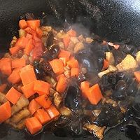 放入胡萝卜丁和黑木耳丁。