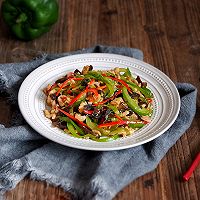 里脊肉100克、青椒1个、红尖椒2个、木耳5朵、料酒1勺、生抽1勺、胡椒粉1茶匙、淀粉1汤匙、蚝油1勺、盐适量、姜5克、葱5克