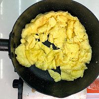 洗干净锅后热锅倒油,倒入准备好的蛋液,翻炒成小块盛出;