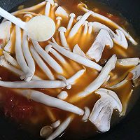 食材: 西红柿2个、松茸菇适量、茶树菇适量、盐,生抽各2克、玉米油适量 步骤1: 西红柿切成小块,油锅烧热倒入玉米油,大火煸炒西红柿。 步骤2: 加入适量水,加入两种蘑菇。 步骤3: 大火煮开,加入少许盐,少许生抽。大火煮10分钟。 步骤4: 入盘,成品图。 步骤5: 成品图。 步骤6: 成品图。 步骤7: 成品图 步骤8: 成品图 步骤9: 成品图