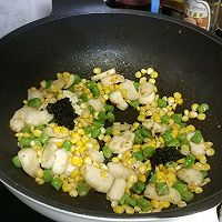 食材: 玉米粒150g、四季豆10条、马蹄6个、盐少许、橄榄菜2勺 步骤1: 马蹄切片、四季豆切粒、玉米粒洗干净备用 步骤2: 锅里热油,倒入四季豆、玉米粒翻炒 步骤3: 盖上盖焖1分钟 步骤4: 开盖放入马蹄片炒均匀 步骤5: 放入盐、橄榄菜 步骤6: 翻炒均匀即可 步骤7: 成品 步骤8: 成品