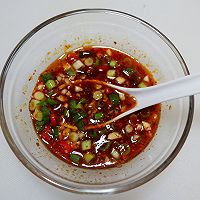 再加入油辣子,生抽,米醋,白糖,盐,2勺冷开水,拌匀调成酱汁。