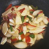 食材: 茭白2根、火腿肉100g、胡萝卜半根、青椒半个、葱适量、姜适量、盐适量 步骤1: 准备食材,茭白,胡萝卜切斜片,青椒切斜块,葱姜切成段,火腿片备用 步骤2: 放油5分热放火腿片,酱油,炒熟放葱姜青椒炒香,放胡萝卜,加水翻炒 步骤3: 放茭白翻炒均匀,加水炒熟,加盐翻炒 步骤4: 翻炒均匀可以出锅了