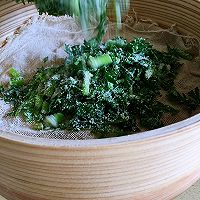 拌均匀的米粉茼蒿直接倒在屉布上,用筷子稍稍整理均匀,但不要压,让茼蒿保持松散的状态。