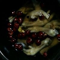 食材: 制首乌30g、黑豆100g、鸡脚12个、瘦肉100g、红枣20个、姜15g 步骤1: 原材料:制首乌,红枣,黑豆(炒过,略煮) 步骤2: 原材料:鸡脚剁去指甲,斩开,过水,洗净。瘦肉过水,洗净。姜拍碎。 步骤3: 所有材料放入电高压锅,调“煲汤”健,开始煲汤。煲好后起锅放盐。 步骤4: 满满的胶原蛋白!淡淡地药香,有一点红枣的甜味!老少皆宜!