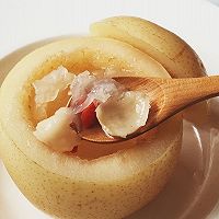 雪梨一个、川贝粉一小勺、百合少许、银耳少许、枸杞5颗、土冰糖一块