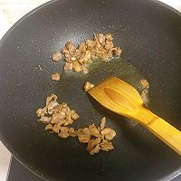 鸡肉炒变色后,倒入香菇丁