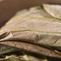 荷叶用滚水烫洗干净,粳米糯米放入荷叶中包好,入锅大火蒸十五分钟后取出备用。