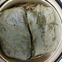 上蒸锅,中火蒸30-40分钟,荷叶的香味就基本上渗入糯米鸡了,荷香飘满整个屋子,迫不及待趁热乎吃了