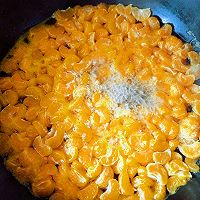 凉水冰糖橘子一起下锅,大火开锅,小火炖七八分钟,这个时候用勺子多翻一下,尝尝味道(太甜放水,不甜放糖,)