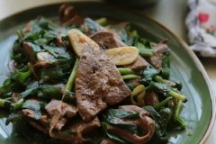 再加入少许水和适量的生抽, 炖煮一、两分钟, 倒入少许水淀粉
