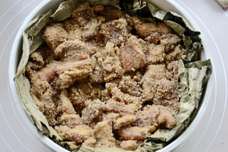 五香荷叶粉蒸肉的做法: