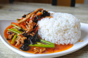 盖饭也叫盖浇饭,主要作法就是把各种相应食材做好的菜(多数为下饭菜,且通常刚出锅)连带汤汁一起铺盖在装好的米饭上面,由此得出这样一个名字“盖饭”。传统盖饭有 地三鲜盖饭,肉段烧茄子盖饭、木须柿子盖饭等,起源于四川,流传于北方,东三省最为流行。由于用料简便,价格便宜,相对更加营养,且制作方便,通常作为快餐广受学生朋友和上班族的欢迎。