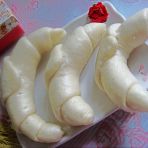再用小刀从另一侧斜切,切成浅V形。按照这样的刀法,切“米”字或“十”字形状。如图