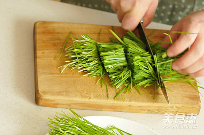 3.将小麦草洗净切段,丢弃最前端的茎秆,只要叶子