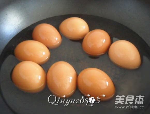 5.水里放花椒、大料、香叶、桂皮、老抽、盐等调料煮开,等调料水的颜色变深时,放鸡蛋煮几分钟,起锅,鸡蛋继续浸泡一夜。