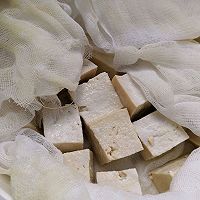 老豆腐切成2cm方块,沥干水分,铺上纱布,冬天常温下(8℃左右室温)自然放置1周(夏天2-3天,太久会坏掉),等待豆腐自然腐化。