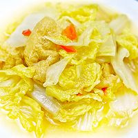 食材: 娃娃菜1颗、油盐适量、豆腐泡适量 步骤1: 食材准备豆腐泡,娃娃菜,葱,红椒。 步骤2: 热油爆香红椒葱。 步骤3: 翻炒豆腐泡。 步骤4: 翻炒娃娃菜。 步骤5: 加一勺盐。 步骤6: 加水没过菜,盖上锅盖,闷10分钟出锅。 步骤7: 好啦完成啦。 步骤8: 简单又营养。