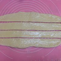 均匀涂满黄油+炼乳混合成的炼乳酱,不要把酱涂完,剩一点二次发酵后涂;