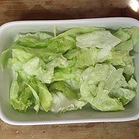 11、准备一个深的盘或者盆,放入生菜,也可以放豆芽,看个人喜好。