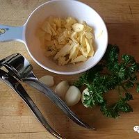 原料:黄蚬子、欧芹、安佳黄油、蒜蓉、盐、胡椒粒。