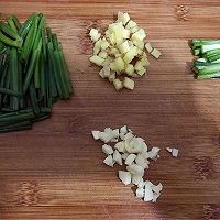葱切成段,姜切成粗粒,蒜切成蒜粒备用