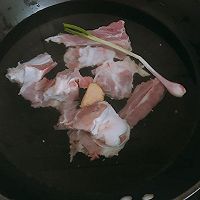 筒骨冷水上锅,放姜二三片,料酒2勺,葱一根焯水