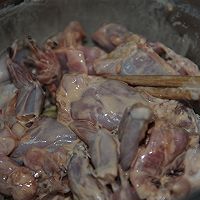 将料酒酱油汁倒入牛蛙中,拌均匀,腌制20分钟。