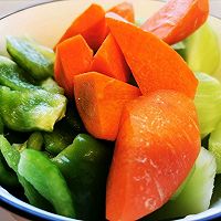其他配菜下油锅,翻炒一下,加一点点水就好,翻炒一下,放到键烤盘上