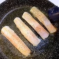 待一面鱼肉成型后翻面,也撒入现磨黑胡椒和海盐