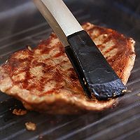 在牛排静置时流出的汁液上挤上柠檬汁,搅拌均匀后浇在牛排上