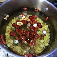 食材: 鹌鹑2只、黄萝卜1条、鲜淮山1节、红枣5-8粒、无花果3粒、蜜枣3粒、桂圆1把、莲子1把、百合1把、干瑶柱适量、枸杞适量、姜片适量 步骤1: 所有材料清洗干净,加入适量清水浸泡1小时 步骤2: 鲜淮山和黄萝卜切块备用 步骤3: 鹌鹑冷水下锅,加入姜片煮出血沫 步骤4: 材料煮沸后加入鹌鹑,黄萝卜,鲜淮山,大火煮10分钟转小火慢炖2小时即可 步骤5: 成品 步骤6: 成品