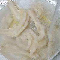 捞出来,过冷水,到鸭掌摸上去没有温度。控水。