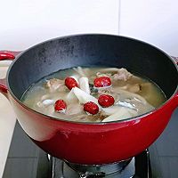 时间到后再加入切好的山药,洗干净的红枣再炖15分钟。