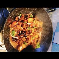 (土豆我提前用空气炸锅炸熟的),再煮几分钟,最后放入提前准备好的,洋葱,青红椒,蒜苗翻炒,起锅倒入砂锅中。