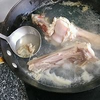 食材: 牛骨头三根、姜六片、天麻10克、葱5节、黄豆一小把 步骤1: 牛骨头洗一下放到锅里 步骤2: 添水烧开把血沫子打掉 步骤3: 把所有食材都放进砂锅,把水倒满,大火煮开改小火慢炖两个多小时 步骤4: 美味的牛骨头汤就好了!