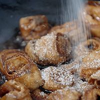 热锅起油,下大肠煸炒,加入黄酒、老抽、生抽、盐和糖炒匀,等大肠均匀上色后加入开水,盖上盖小火焖煮5分钟。开盖,调大火收汁,淋入水淀粉勾薄芡;