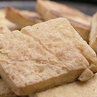 热锅下熟菜籽油,六成油温后下豆腐将两面都煎到金黄色;