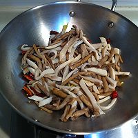 烧热炒锅,下适量油,放姜丝和干辣椒爆香;