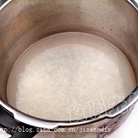 加入草菇丁、猪肉丝、蒜片、盐,再煮至粥熟。