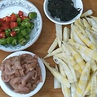 食材: 橄榄菜1勺、大蒜2瓣、糖适量、盐适量、蚝油适量、小米辣1根、笋尖一袋、鸡精5克 步骤1: 准备笋尖滚刀切条,肉丝,米椒丁,橄榄菜备用。 步骤2: 笋尖儿焯水 步骤3: 锅中放入少许色拉油,先炒肉丝。 步骤4: 肉丝炒熟放入米椒 步骤5: 再放入橄榄菜爆香 步骤6: 最后加入笋尖,放入盐味精鸡粉耗油调味翻炒一会儿。 步骤7: 出锅装盘