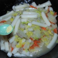 食材: 大白菜500克、猪肉100克、胡萝卜100克、年糕350克、油适量、盐适量、鸡精适量 步骤1: 所有食材洗净切好 步骤2: 起油锅加热,放入肉丝煸炒1分钟 步骤3: 然放胡萝卜煸炒2分钟 步骤4: 放入大白菜煸炒炒透 步骤5: 放入年糕煸炒3分钟 步骤6: 放适量的盐煸炒5分钟 步骤7: 最后放适量鸡精炒匀