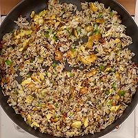 油10g、鸡蛋1个、洋葱碎20g、橄榄菜20g、胡萝卜丁20g