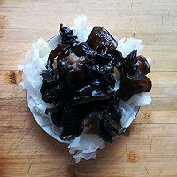 泡发好的木耳摘洗干净,撕小朵装盘备用。