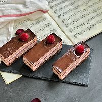 取出冷冻好的蛋糕,脱模切块即可,至此树莓歌剧院完成,一共9层