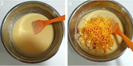 9.图1-烤箱预热180度,将苹果丁拌入面糊里。