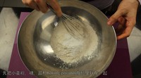 1.) 先把大麦、糖、盐和baking powder在碗里拌在一起。