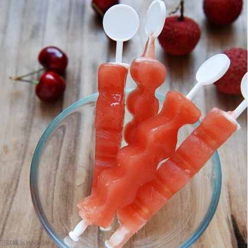 〖樱桃棒冰〗 准备材料: 樱桃500克、砂糖2匙、柠檬汁适量 制作过程: 1、樱桃去核后,加适量矿泉水榨汁,滤掉渣滓。 2、加入砂糖溶化,再少许柠檬汁搅拌匀,最后入冰棍模进冰箱冻起来即可。 小提示: 1、为增加口感可以加入适量樱桃果肉。或用浓缩的樱桃果汁制作此冰棍。 2、将樱桃果汁换成山楂汁、葡萄汁制作冰棍,就能做出不同口味的果味冰棍。