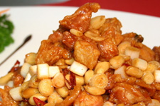宫保鸡丁,是一道闻名中外的汉族传统名菜。鲁菜、川菜、贵州菜中都有收录,原料、做法有差别。该菜式的起源与鲁菜中的酱爆鸡丁,和贵州菜的胡辣子鸡丁有关,后被清朝山东巡抚、四川总督丁宝桢改良发扬,形成了一道新菜式——宫保鸡丁,并流传至今,此道菜也被归纳为北京宫廷菜。之后宫保鸡丁也流传到国外。 宫保鸡丁选用鸡肉为主料,佐以花生米、黄瓜、辣椒等辅料烹制而成。 红而不辣、辣而不猛、香辣味浓、肉质滑脆。由于其入口鲜辣,鸡肉的鲜嫩配合花生的香脆。
